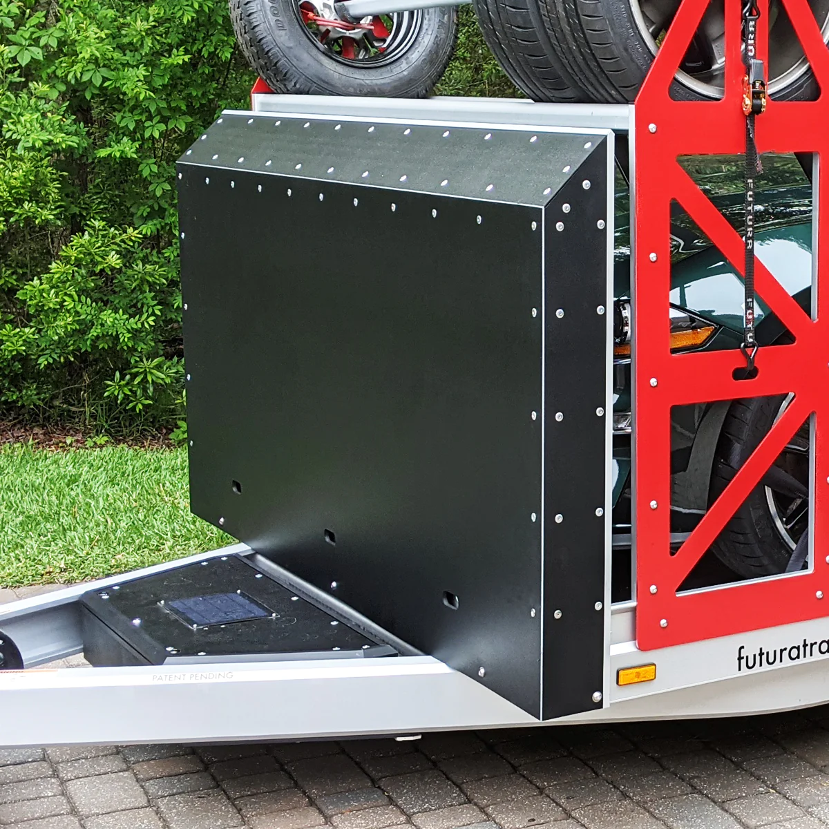 Carry a full set of race wheels without sacrificing tow vehicle space.