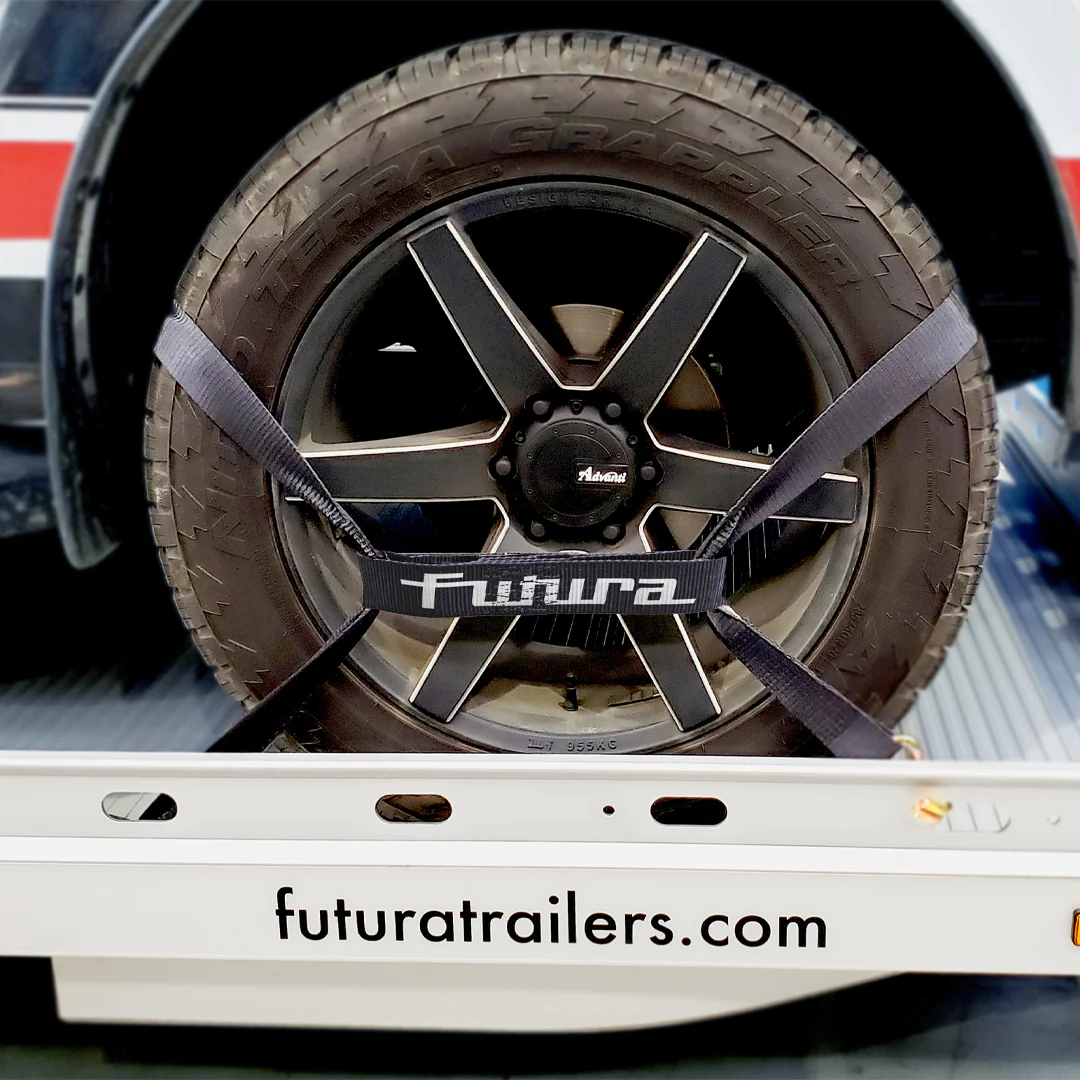 The Lockable Tire Rack and Tie-Down Set keep your vehicle and wheels secure — in transit and parked.